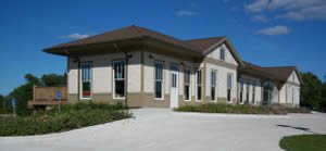 The Welcome Center is located less than a mile from a high speed interchange. It provides a safe access roadway stop for motorists and is highly visible from the interchange. The site is situated adjacent to a small wooded area and has a view of Cedar Lake and Cedar View Park. There is also a beautiful view from the deck.